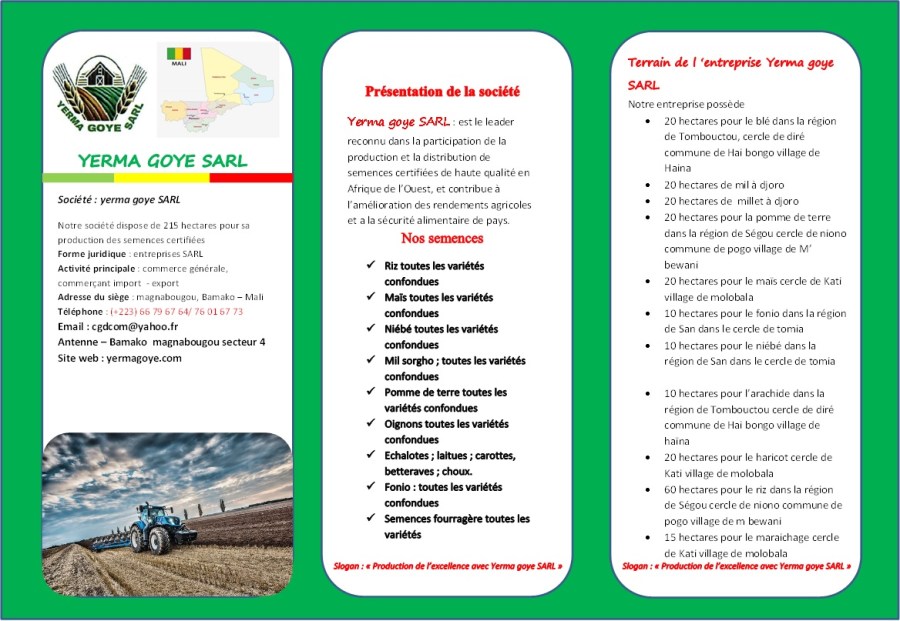 Nous sommes une entreprise de production et de vente de semences autrefois appelé faba tiere dont leureau situé à magnabougou extension secteur 4